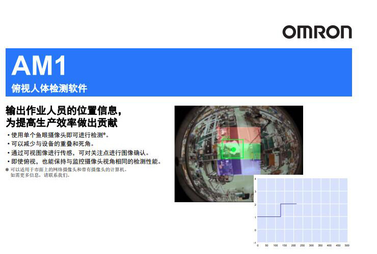 使用單個魚眼攝像頭即可進行檢測*。可以減少與設備的重疊和死角。通過可視圖像進行傳感,可對關注點進行圖像確認。即使俯視,也能保持與監控攝像頭視角相同的檢測性能。* 可以適用于市面上的網絡攝像頭和帶有攝像頭的計算機。如需更多信息,請聯系我們。